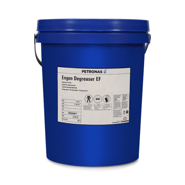 Engen Degreaser EF is an environmentally friendly, general purpose de-greasing fluid suitable for cleaning grease and oil deposits in most industrial and automotive applications. Being water based, Engen Degreaser EF has no flash point and is therefore extremely safe to use, particularly in poorly ventilated areas, or areas that pose a fire risk, where the traditional, solvent based degreasers could prove dangerous. It is biodegradable, of medium alkalinity and has anti-static properties to improve its cleaning efficiency.